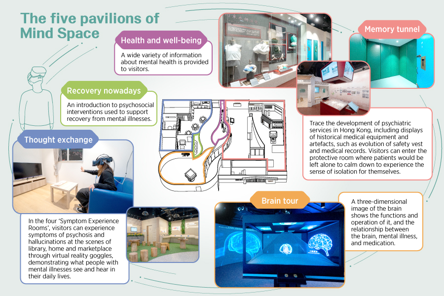 Mind Space offers a range of interactive elements to enhance the visitor experience. Upon arrival, visitors receive a wristband for registration and can scan QR codes on display boards along their journey. The information of the museum will then be sent to them by email. Pang Shu-leung, Service Manager of Department of Community Psychiatric Service at CPH played a leading role in the design and operation of Mind Space and is encouraged by the reaction of visitors.