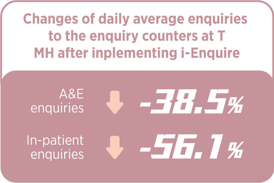 To find out where to visit a patient, family and friends must complete the verification process, starting with entering the patient's ID card number or contact phone number, and then correctly matching the patient's basic information on the screen, including name, age group and gender, etc. The verification process aligns with the process in enquiry counters. “We attach great importance to the protection of patient privacy and information security, and have incorporated a number of elements into the design of the system to prevent others from obtaining patient information by random trials. On the other hand, a patient privacy impact assessment was conducted prior to the launch of i-Enquire, so as to ensure that the operation is fully compliant with Hospital Authority (HA)'s guidelines and policies on the protection of patient privacy,” Dr Lui emphasises. A privacy filter is affixed to the screen of the kiosk to prevent leakage of patient privacy information.A&E departments are always busy. The self-service enquiry system does not only facilitate patients and their families, but also helps relieve the pressure on A&E nurses and enquiry counters staff. Since the establishment of i-Enquire in the A&E Department at TMH on 8 January, there were 398 and 65 patient journey and location enquiries using i-Enquire in four weeks respectively, while the average number of enquiries handled by the enquiry counters per day was reduced significantly (see table). The public was also generally satisfied with the performance of i-Enquire, with 92% of the users who enquired about patient location giving a rating of 4 stars or above (up to 5 stars).