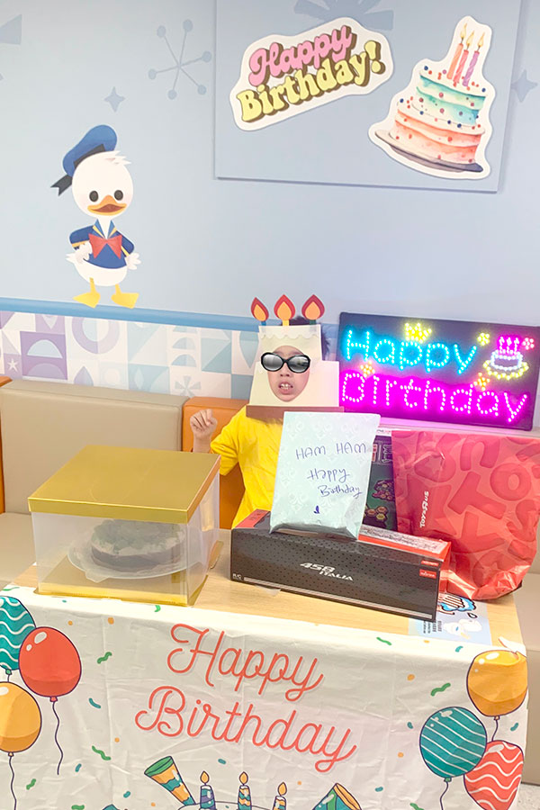 在大口環根德公爵夫人兒童醫院,一間活動室也添置流動電影院,讓病童與家人觀賞迪士尼動畫,把病榻化作一段珍貴的親子時光。院方更在佈滿迪士尼壁畫的活動室,為長期住院的小病友舉辦生日會,不僅讓他們暫時忘卻病痛,還幫助他們結識朋友,在最困難時候編織出快樂的回憶。