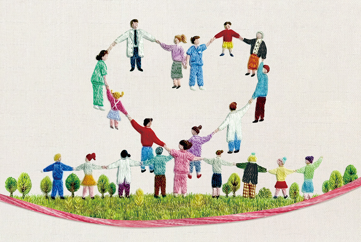 今期《協力》的封面以刺繡圖案描繪公立醫院與社區的緊密連繫,一針一線,將醫護人員、社區夥伴及病人連繫起來,編織出醫社共融的美麗風景。