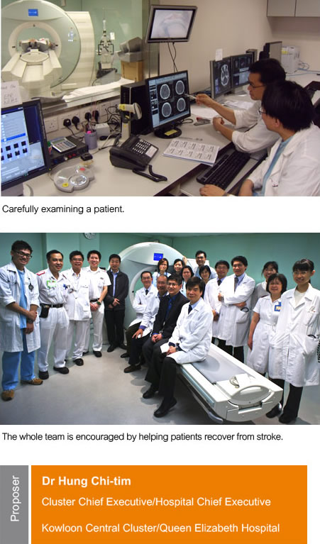 international standards of efficacy and safety. 10 per cent of patients were discharged directly from QEH despite the initial presentation of a severe stroke - a rewarding outcome for patients and team members. The team successfully implemented the only 24-hour acute stroke thrombolysis service using tele-radiology in the Hospital Authority.