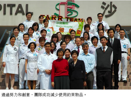 有 見 及 此 , 由 沙 田 醫 院 內 科 及 老 人 科 一 班 醫 生 、 護 士 、 物 理 治 療 師 及 職 業 治 療 師 組 成 了 防 跌 無 約 束 團 隊 , 積 極 研 究 減 少 使 用 約 束 物 品 。