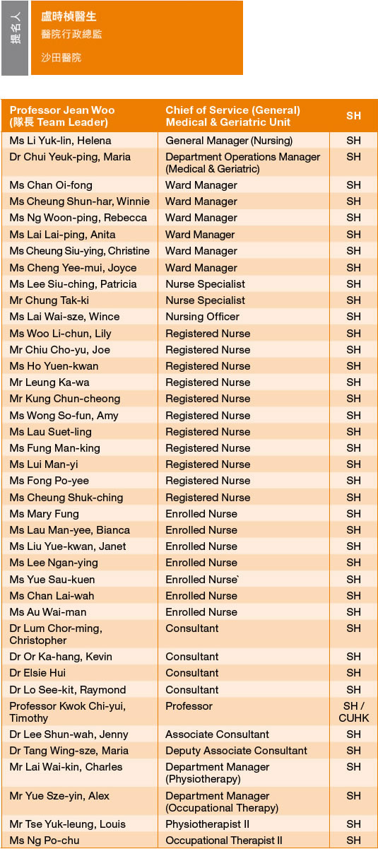 團 隊 旨 在 提 升 病 人 的 復 康 及 服 務 質 素 , 讓 同 事 了 解 及 同 意 這 個 理 念 , 以 學 習 處 理 容 易 跌 倒 和 神 智 混 亂 的 病 人 , 同 時 又 加 強 對 病 人 的 觀 察 與 看 護 , 更 添 購 了 電 動 護 理 床 來 協 助 處 理 常 見 的 問 題 。