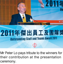 ix awarded staff members and five awarded healthcare teams joined the 2011 Outstanding Staff and Teams Award 2011 Presentation Ceremony on 12 May. Established in 1993, this annual Hospital Authority award recognises outstanding patient care.