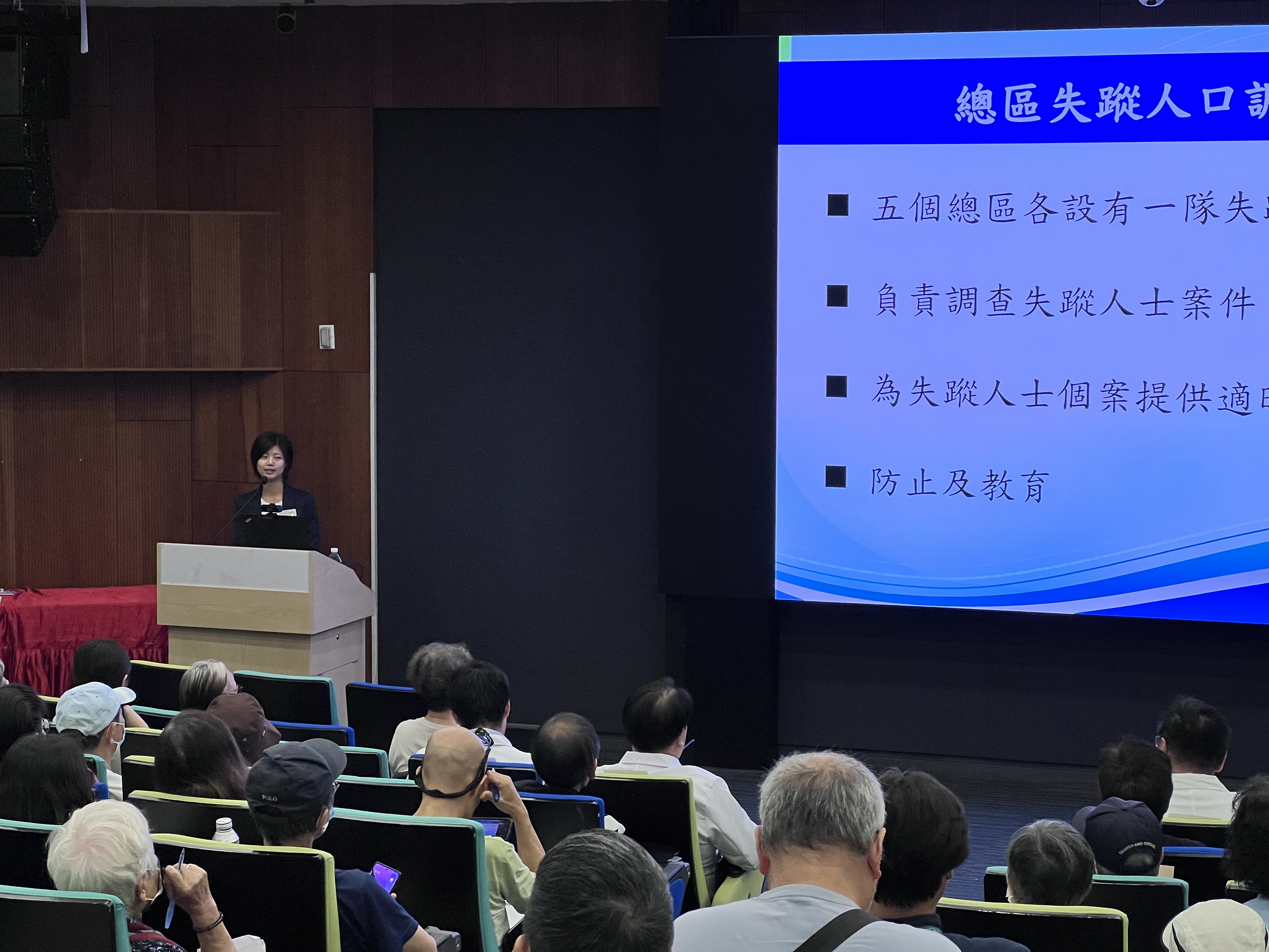 參加者除可在講座中了解相關資訊外,亦可在演講廳外直接向港島總區失蹤人口調查組作查詢、從社區策略伙伴認識相關社區支援服務,以及找瑪麗醫院專科門診部同事了解更多有關HA Go手機程式的應用。