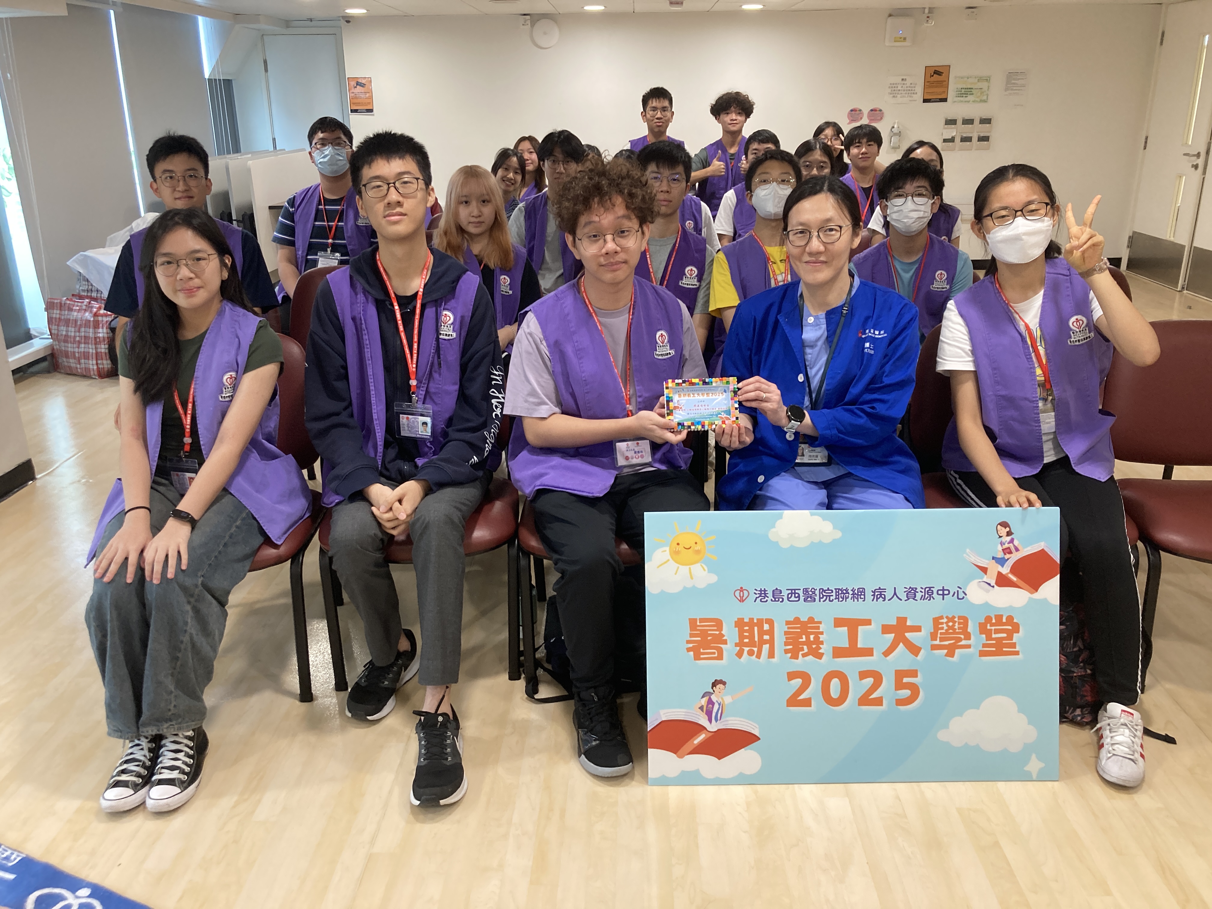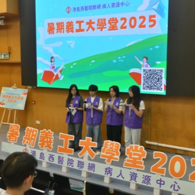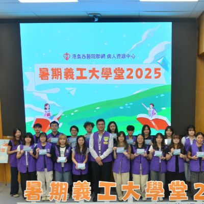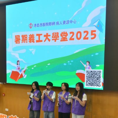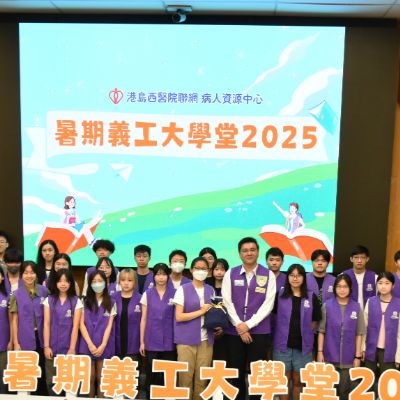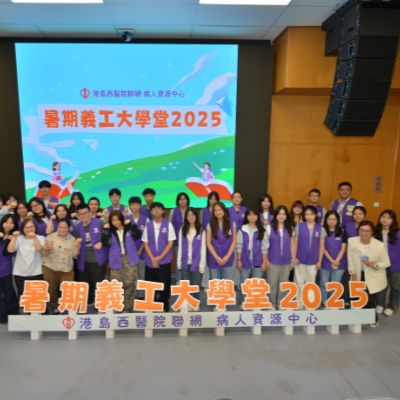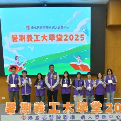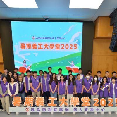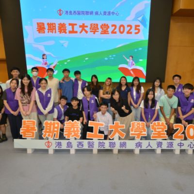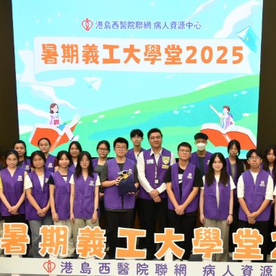 港島西醫院聯網病人資源中心 - 暑期義工大學堂2025完滿結束。青年義工透過學生健康大使訓練及服務計劃,為病人提供了接近6000小時的義工服務。除此之外,學生亦參與了不同部門的訓練,實踐從醫療角度,微觀社會,探索生命的目標。再次恭喜各位青年義工順利完成四星期的訓練及服務,你們的熱誠和付出為醫院帶來了活力; 為病人帶來了溫暖。