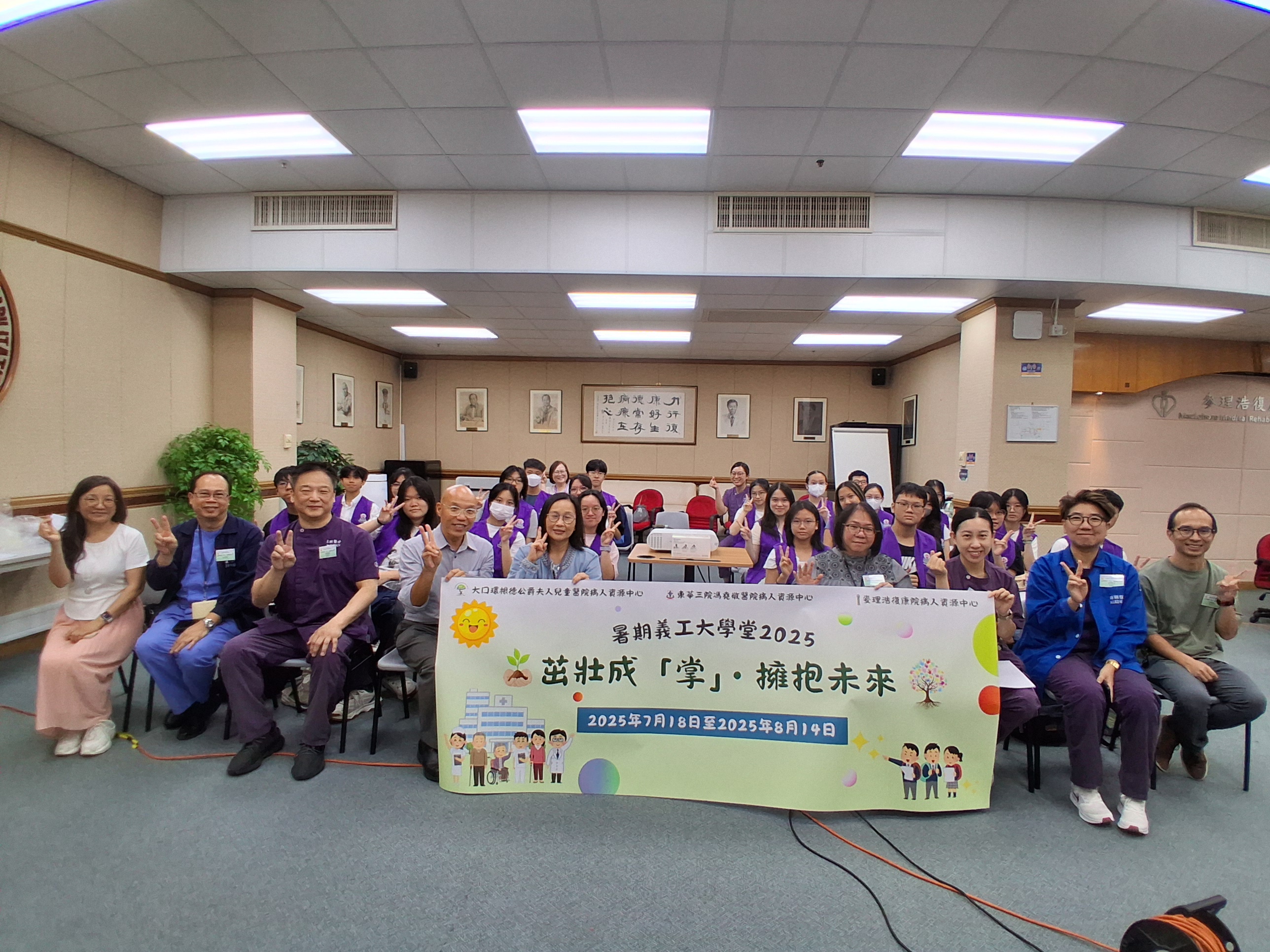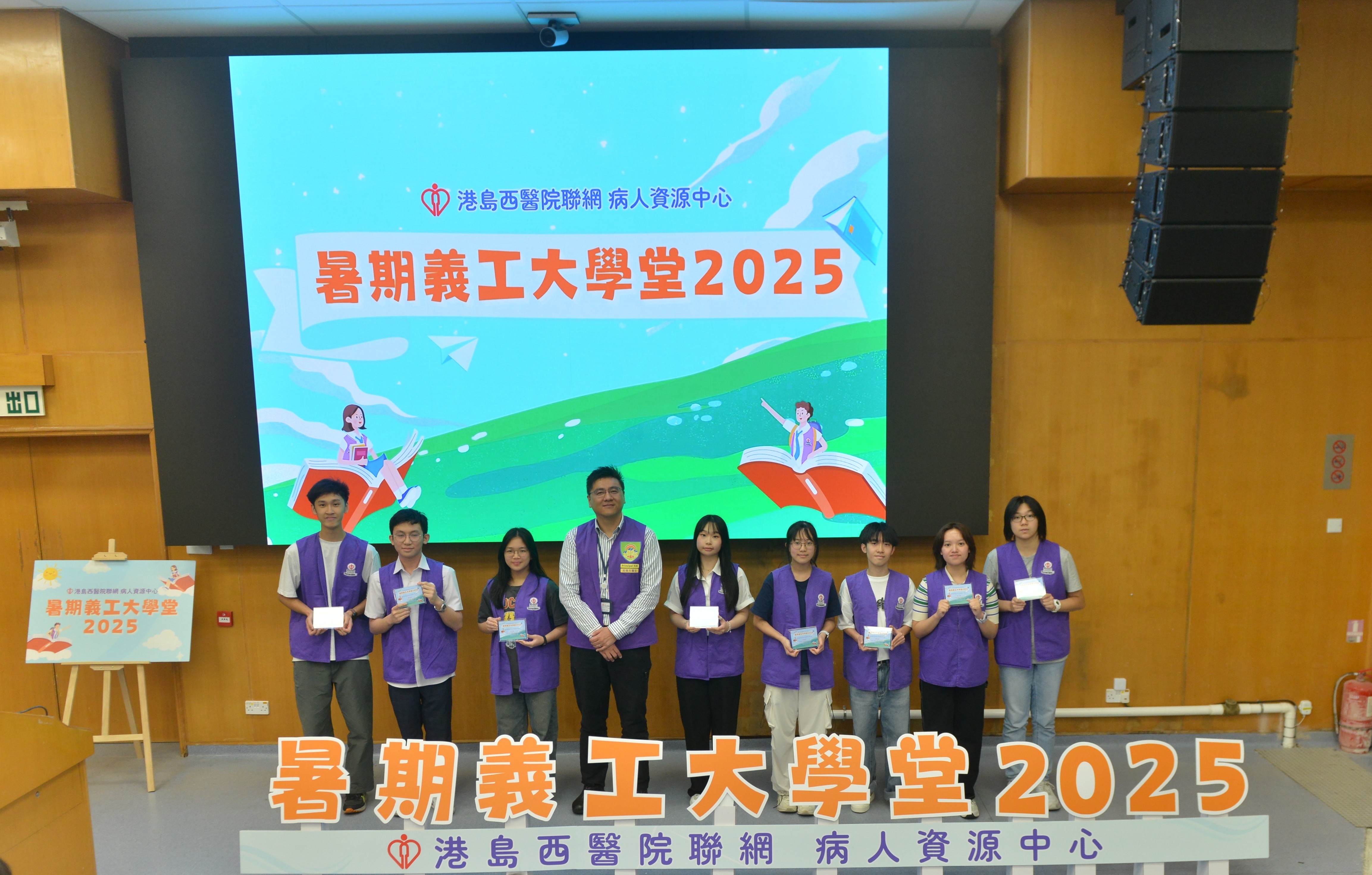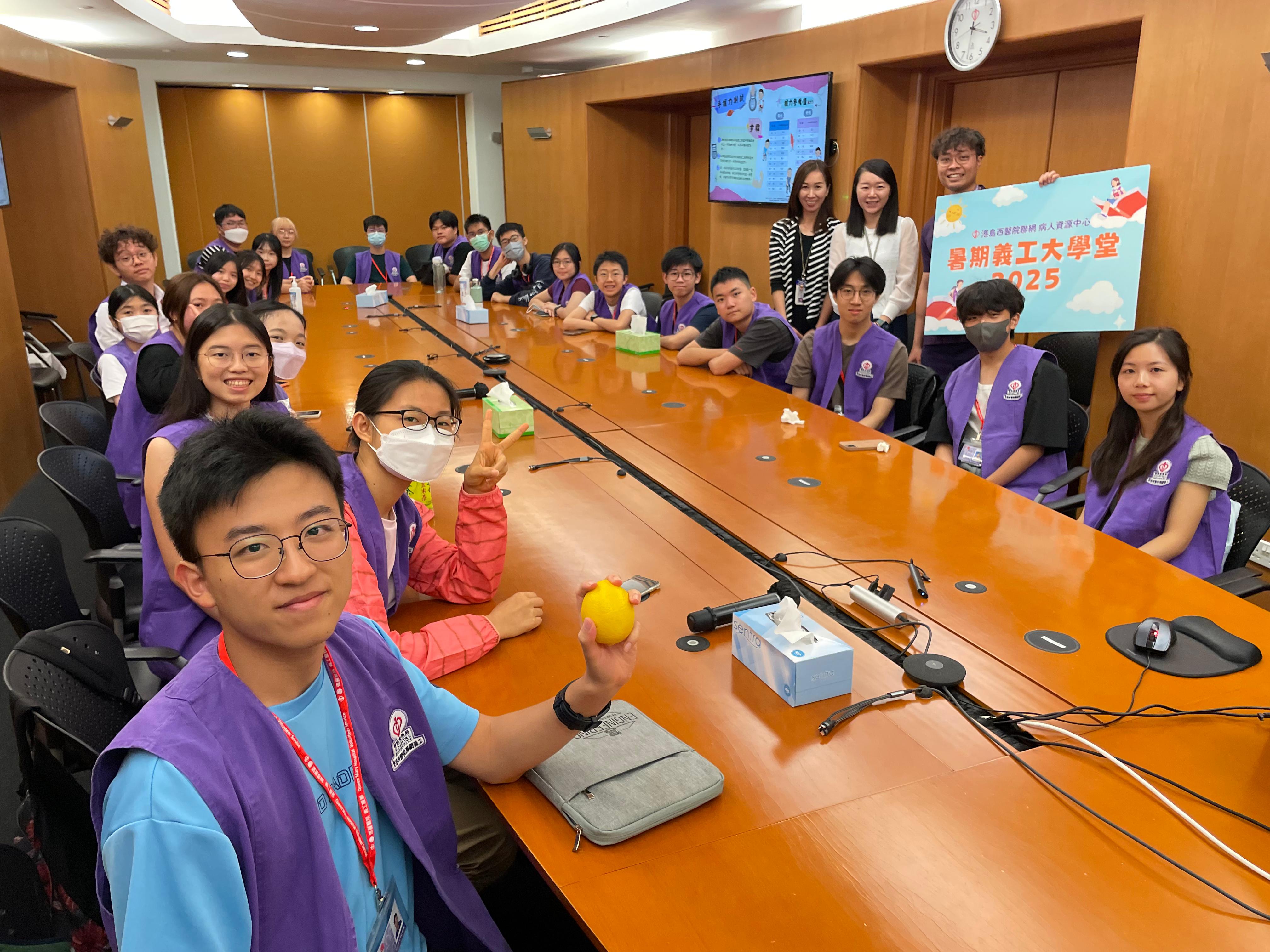 港島西醫院聯網病人資源中心 - 暑期義工大學堂2025完滿結束。青年義工透過學生健康大使訓練及服務計劃,為病人提供了接近6000小時的義工服務。除此之外,學生亦參與了不同部門的訓練,實踐從醫療角度,微觀社會,探索生命的目標。再次恭喜各位青年義工順利完成四星期的訓練及服務,你們的熱誠和付出為醫院帶來了活力; 為病人帶來了溫暖。