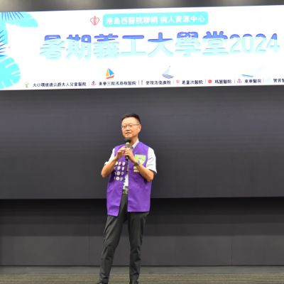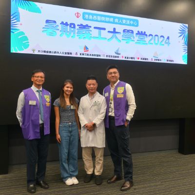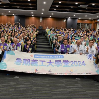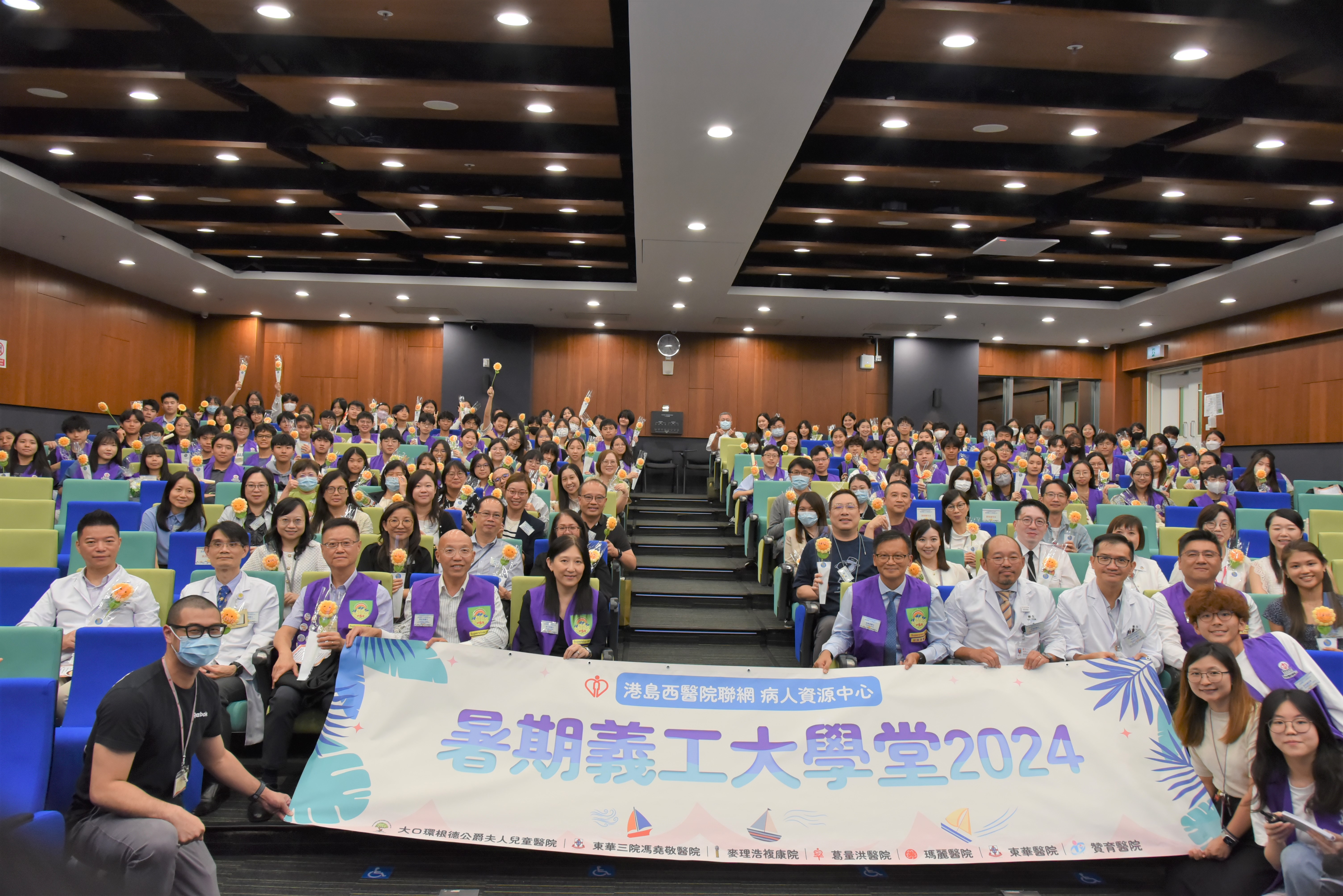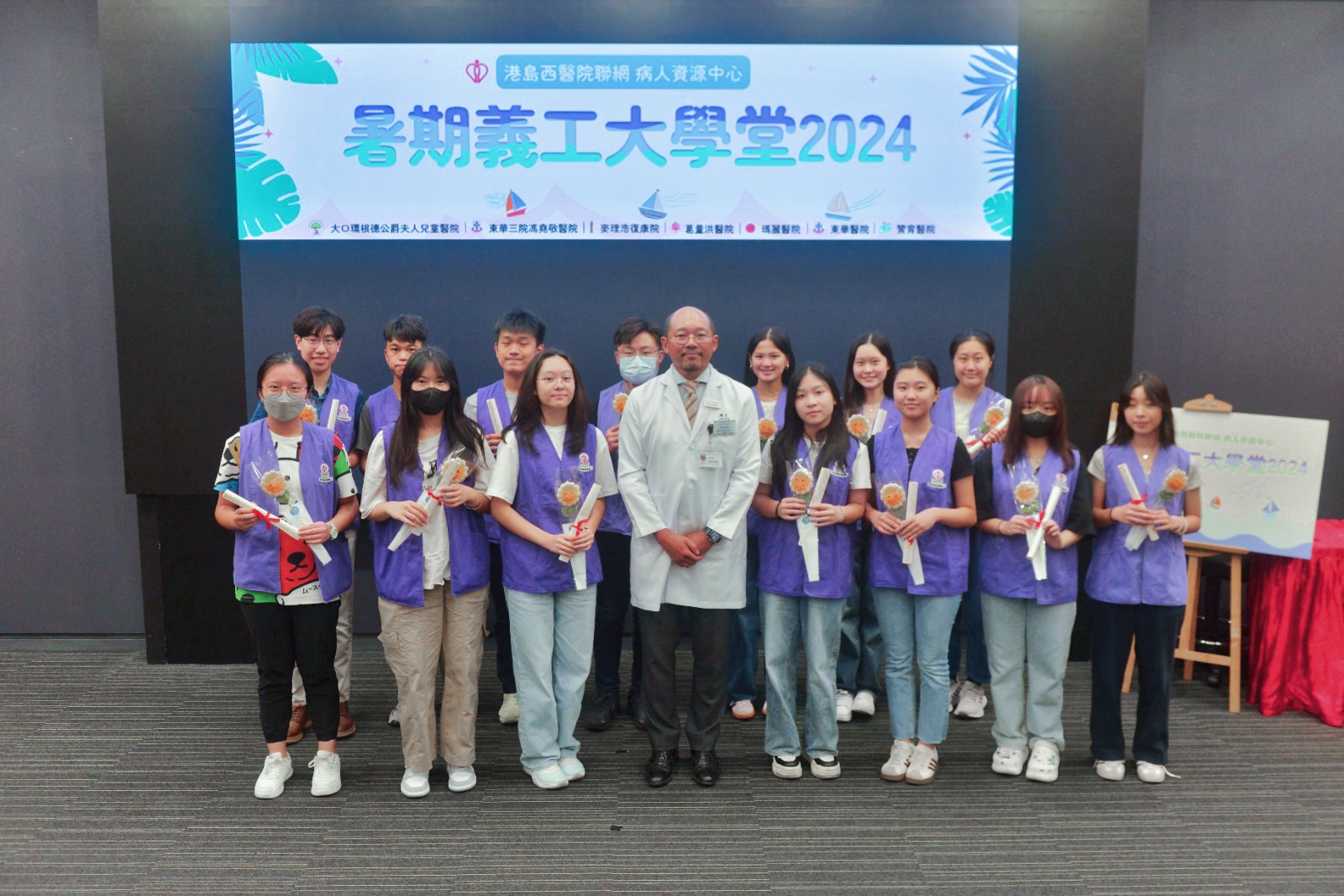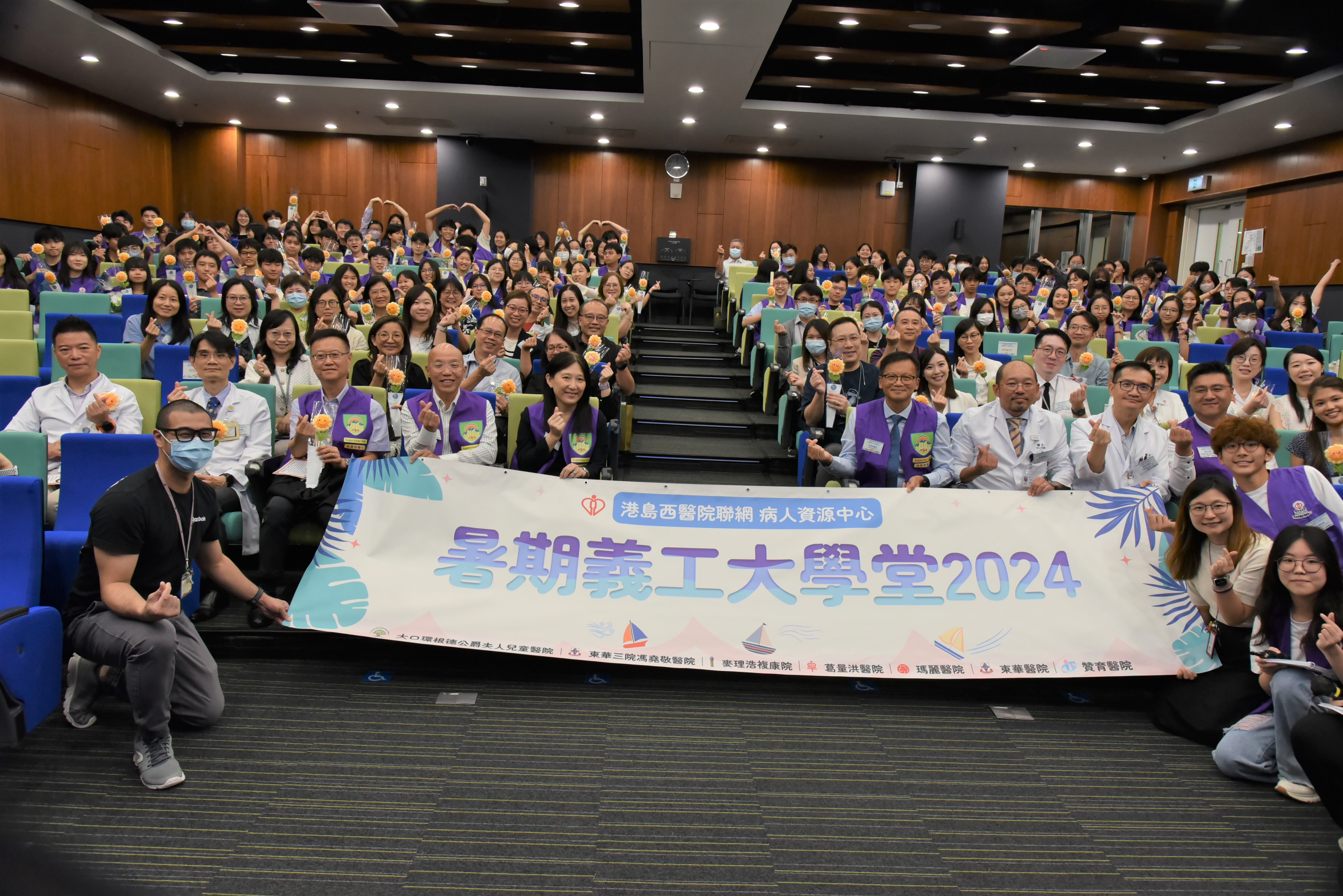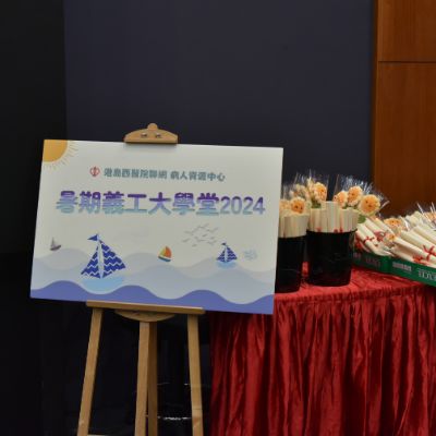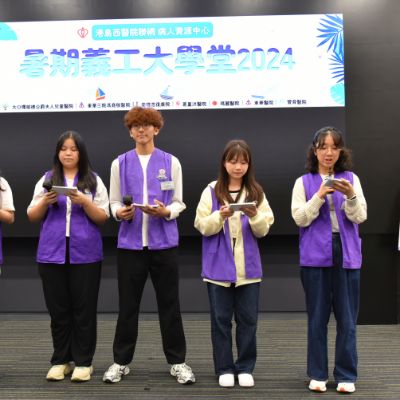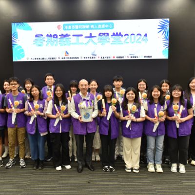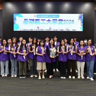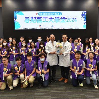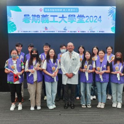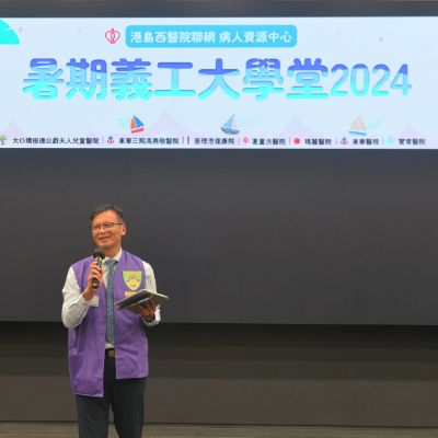 港島西醫院聯網病人資源中心每年舉辦暑期義工大學堂 – 學生健學生健康大使訓練及服務計劃。衷心祝賀超過120位學生義工已完成計劃,並為病人提供了超過5000小時的義工服務。希望學生義工在今夏所觀察到的、領悟到的,好好記在心上,逐一思索並回饋社會,實踐出暑期義工大學堂的重大理念-「讓年青人,從醫療角度,微觀社會,探索生命」。再次感謝各位義工的辛勤付出,你們的努力不僅造福了病人,也給醫院帶來了溫暖和關懷。