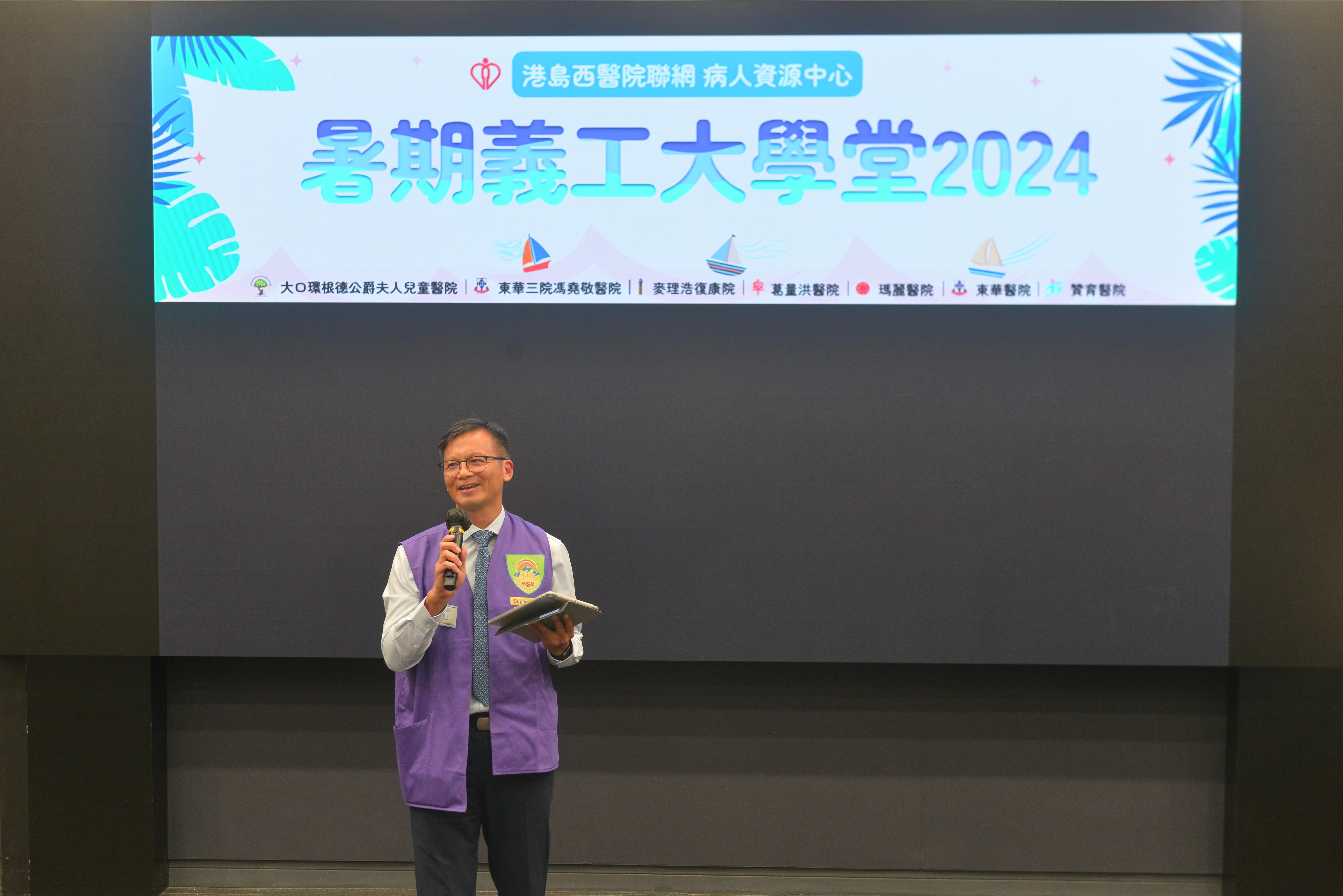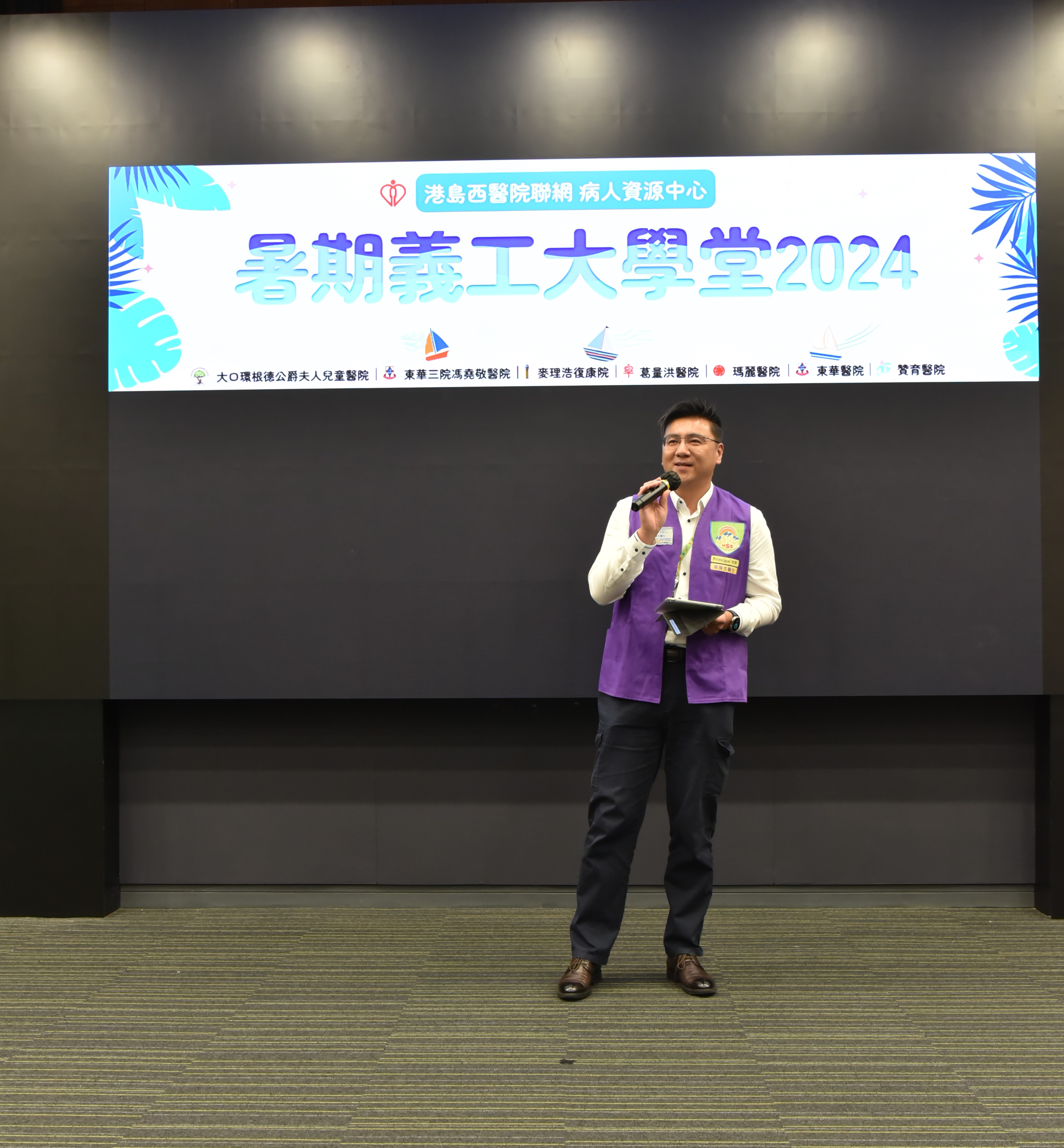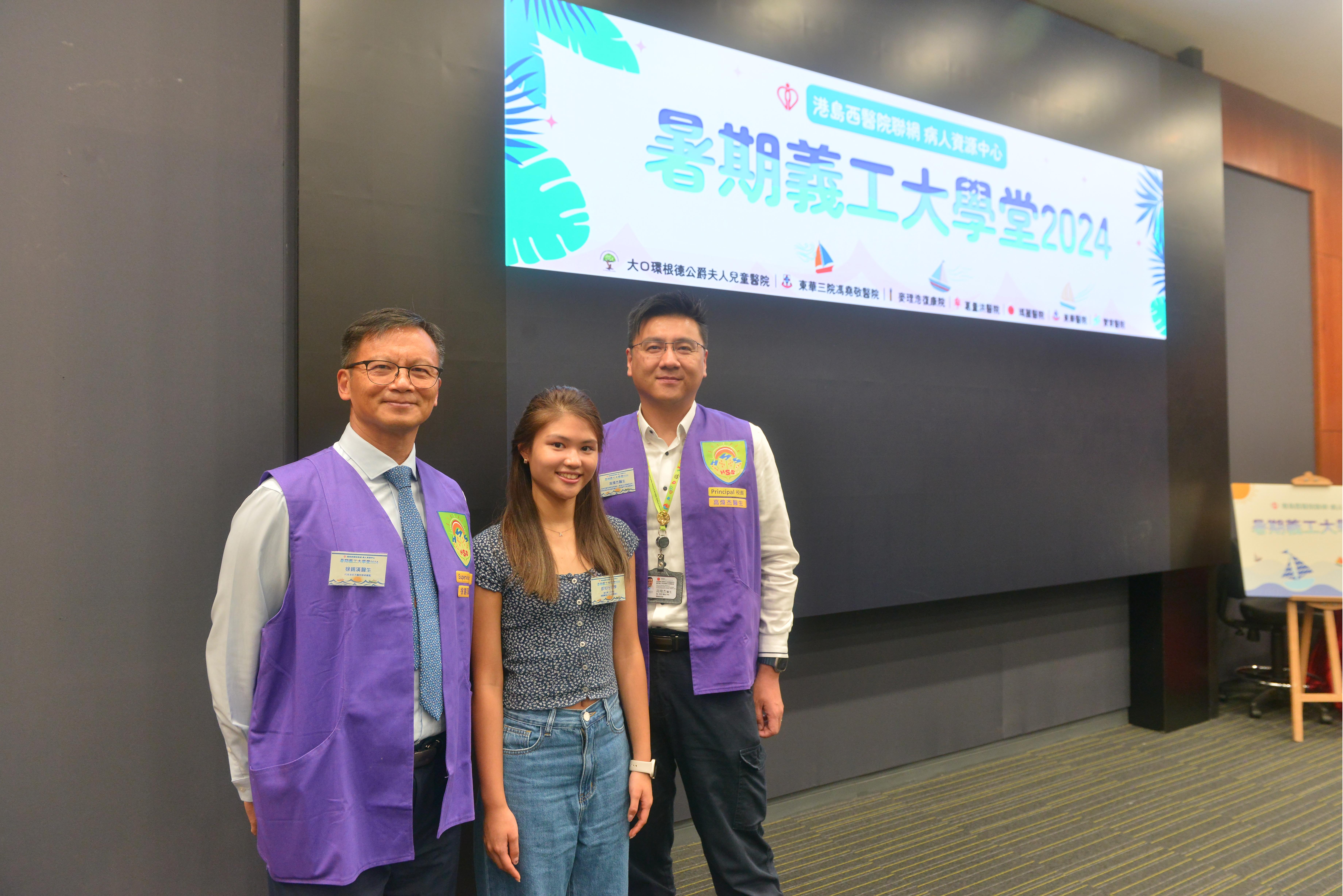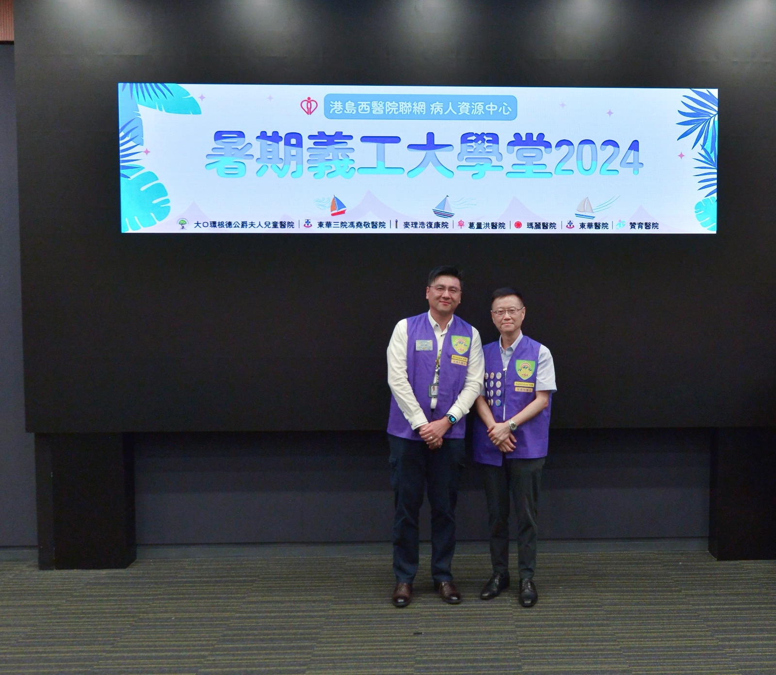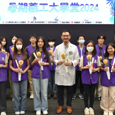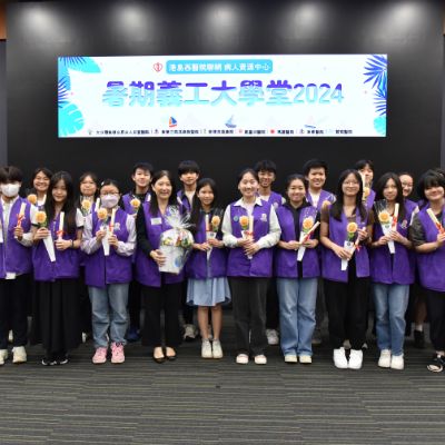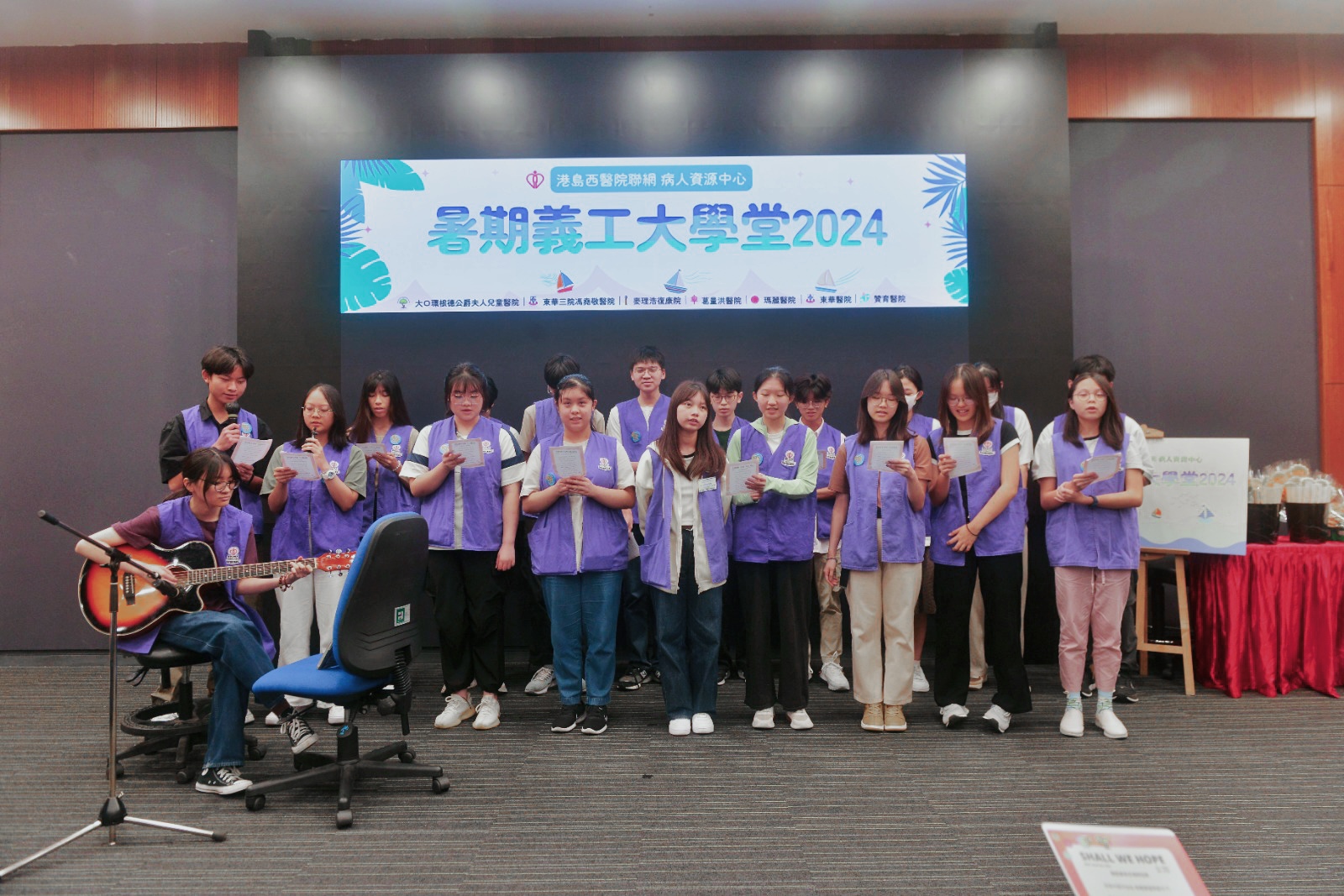 港島西醫院聯網病人資源中心每年舉辦暑期義工大學堂 – 學生健學生健康大使訓練及服務計劃。衷心祝賀超過120位學生義工已完成計劃,並為病人提供了超過5000小時的義工服務。希望學生義工在今夏所觀察到的、領悟到的,好好記在心上,逐一思索並回饋社會,實踐出暑期義工大學堂的重大理念-「讓年青人,從醫療角度,微觀社會,探索生命」。再次感謝各位義工的辛勤付出,你們的努力不僅造福了病人,也給醫院帶來了溫暖和關懷。